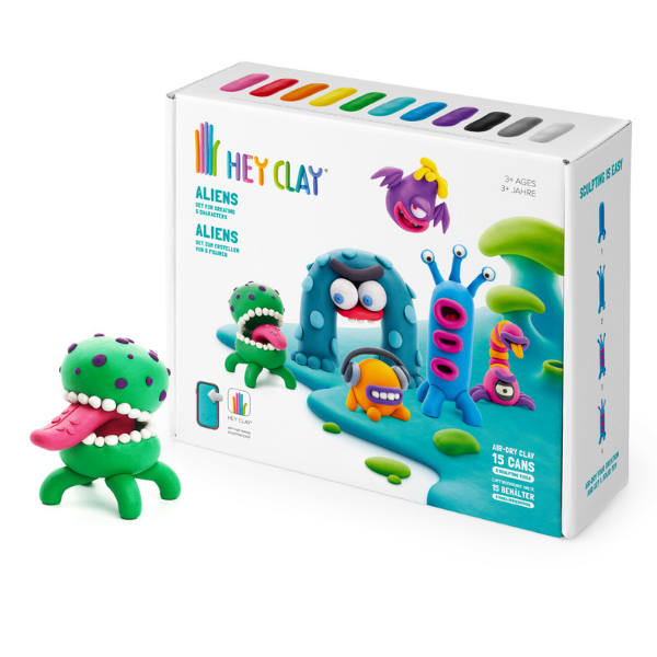 Aliens. Colourful modelling air-dry clay, 15 cans with fun interactive app for kids aged 3+ years.