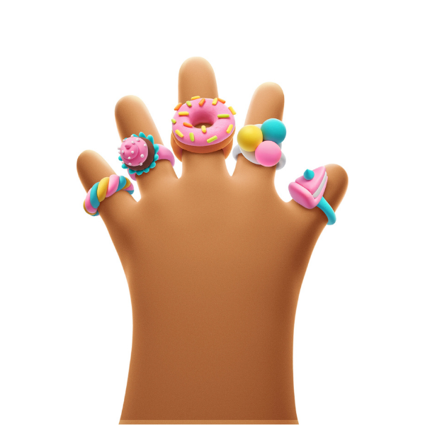 Meet the Sweet Rings, filled with extraordinarily super-sweet powers. The Shiny Smile Cheesecake delivers endless smiles, while the Warm Trio of Ice Cream reminds you to say something sweet, sunny, and warm to someone. The simple yet powerful forces of the Sweet Rings will transform you into the sweetest person ever! And the transformation will start right after you’ve sculpted your first ring... so leeet's goooo! Sculpt like no other and show the world your unique Sweet Ring creations!